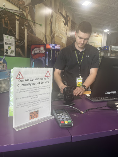 Read moreIt's a pretty fun place this was our first time ever coming here and for a birthday at that so we had one of the staff members that help you while the party is going on he was all out of sorts not really on top of everything but he was super nice and tried to help where he could for the most part I think it was just to many parties going on at one time witch is was probably 2 or 3 other parties going on at that time and there was still room for 1 or 2 more back there and there is only one big back room with tables witch is where the parties are held so not like some other places where you have your own room. But out on the floor the kids had so much fun and so many different areas with things to climb on swings unfortunately the zip line and the surf board were out of service so we didnt get to try them out and not alot of works out on the floors walking around keeping an eye on things. One more thing I just gota tell you there bathrooms if you go there and have to use the restroom put your shoes back on first it was so bad trash all over the floors no soap to wash your hands one sink was broken the toilet paper rolls were sitting on the backs of the toilets and not in every stall so all in all I would probably never have a birthday there or use there bathrooms again but maybe just for a quick visit let the kids jump around for an hr for that I would consider going back but nothing more and just because its closer to our house then any other...
