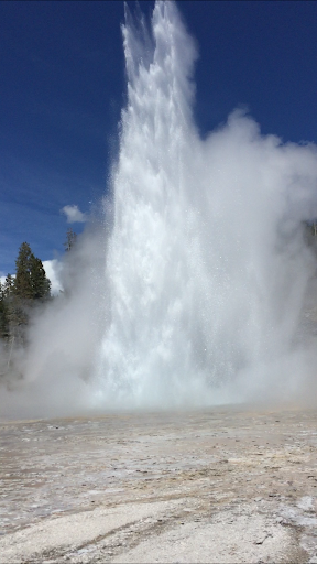 This geyser is a better experience than Old Faithful. First, you are way closer to the geyser itself when it erupts. Second, it is just as tall if not taller than Old Faithful. Third, it erupts for what seemed like longer than Old Faithful. Fourth, it makes an amazing hissing sound from a steam vent to the side of the geyser making for a much more interesting experience than Old Faithful overall. The window of time was from 11am to 1:30pm and it went off very close to 1:30pm. We did hear reports of others waiting up to three hours AFTER the designated window but it was still worth it. This goes off every 7 hours or so, so plan accordingly. Also, in the summer the benches are HOT. We found a place in the shade sitting on the boardwalk on the periphery and it was much more comfortable. It was worth the 3 hour wait. Also, it is very easy to see all of the surrounding geysers and then just run up to it when its erupting. You will be able to see it for about 1/4th of a mile and then saunter over to it when it is erupting which lasts around 7 minutes. There is a lot to explore in the area on...