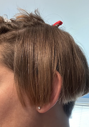 After multiple tries to achieve the right length, ended up saying it looked fine just to get heck out before I had a breakdown. At one point I was in tears, when I realized this stylist didn't care. I didn't want to be a Karen or seem a problem. Left and immediately went to a different salon to get the cut I actually asked for and showed a picture of. A cut I've had multiple times through my life. Hair Cuttery Stylist acted afraid to cut it short. She was super slow. The cut ended up very uneven, about 1/2 inch difference between left and right side, back was uneven, and very bowl like. Layers didnt exist. Worst job ever. The other salon stylists reaction to my cut, "Oh my", repeatedly stating an astonished "Oh my" as she fixed the disaster. Other salon achieved the requested style with absolutely no problem. If you need a cut in a hurry go to Smart Styles, Woodstock. Cheaper, faster, nicer and they listen. The difficult style the the "level 2 stylist" couldn't seem to grasp, a simple layered...