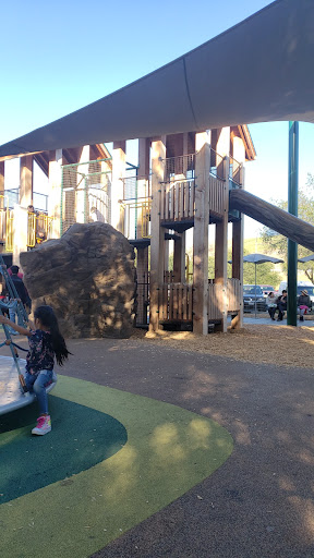 Great place to bring the kiddos for an afternoon outing. My son was so excited to run around the playground. As a parent I was very happy to see the gated perimeter at the playground. The grounds and water park are very clean and restrooms are near by. My son at first was weary of the water fountains. Before you knew it he was off enjoying the water. If you plan to stay a little while make sure to pack a couple of chairs, umbrella and some snacks. There are some shaded areas however, on a summer day it gets a little busy and chairs are...