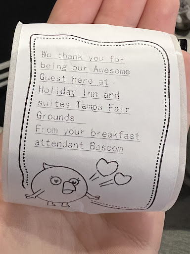 Best place to stay for a concert at the MIDFLORIDA Credit Union Amphitheatre! The breakfast attendant, Bascom made our stay so special! The breakfast was the best we’ve had from any hotel before. Bascom even took the time to provide a pre-concert snack session which was perfect for filling up before the show. The free parking and proximity to the venue were an added bonus!