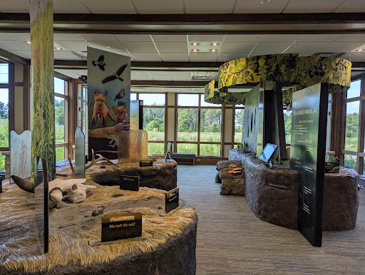 Cool stuff for kids to see and interact with. I like that the kids can climb under the tables and see what animals make homes underground. Puppet theater with lots of cool animal puppets. We visited while there was some kids programming and that was fun. Fun outdoor areas to explore too. We had a picnic lunch on the upper level deck and that was so nice to hear the water feature and sit in the shade and look out on the trees and prairie areas. Lots of picnic tables in the back. Really an impressive building. I also enjoyed the art. There was a side room/space with rocking chairs where you could sit indoors behind glass and watch the birds at the...