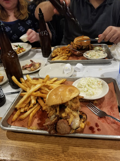 Went to country grill and smokehouse. Wow, great local smokehouse food. Got the Mississippi revenge (?) Burger and was ridiculously huge and delicious. Had smoked sausage, pulled pork, brisket, bacon and Swiss cheese and a side of fries for about $14-15 dollars. So worth it. Call ahead and make reservations.