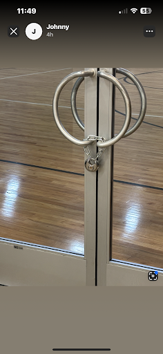 Then super impersonal maintenance guy who somehow never is dressed like a maintenance guy, wonāt give us his name puts a chain and pad lock on the door. (Thatās gotta be fire hazard since the court has an emergency exit.) He then proceeds to tell a member that weāre being punished.