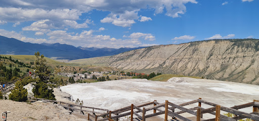 Read moreMy family and I visited the Yellowstone National Park in the beginning of June for the first time. We had made our way through the north entrance of the park. Since we were new to this whole park attraction we asked the park admission clerk about main attractions. We were advised that the closest visitor’s center is at Mammoth Hot Springs, so that’s where we headed. When we arrived the first thing that caught our attention was the Mammoth Hot Spring terrace. We decided to park the car and view it. Maybe 10 minutes into the trip we were pulled to the side and presented with a citation for walking on thermal grounds. I was in shock because where we had crossed to take the picture nothing had indicated the grounds were dangerous. In fact the side of Liberty Cap where we took the picture had grass and normal grounds. There were rocks, supposedly to keep people away, but at the same time you could easily walk in between them. To our right side of the car there were logs laying on the ground with small signs: “Keep Away”. They were so small I had missed them. Of course I pleaded guilty and ended up paying $790 fine. I feel the park is not doing enough to spread awareness about the dangers of the park and the hefty fines associated with crossing the line. First, when we entered we received an information booklet and within the booklet you can find some rules of the park. Those rules are in small print all the way at the bottom. This is like reading fine print disclaimer. Since the rules are so important they should be printed on top. In addition, every person entering the park should be made aware of the rules. Secondly, the Mammoth Hot Spring has an employee on guard on weekends or whenever it gets busy. She was observing us from the beginning and yet she didn’t come to notify us that we can’t be there. Instead she called a park ranger. I feel as if, I fell into a trap, because the park ranger said the grounds are very dangerous, but yet they didn’t have the urgency to notify us of the threat. They have many individuals crossing into the grounds every year, but yet they don’t do anything about it. Even a simple rope or a hand rail would stop individuals from crossing. Mammoth Hot Spring terraces are beautiful and worth viewing, however be aware of the small signs on the ground and obey the rules. It located within a small community, which has a visitor center, post office, court, some shops and park ranger station. It’s a good stop for a restroom. I hope with my review I can spread a little awareness, since I didn’t have the chance to experience that. I will be posting another review about the park in general in a...