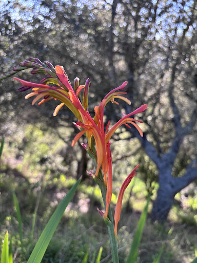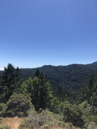 Gorgeous views. Sunny warm day. A few wildflowers. Easy trail with steps leading down to muir woods. No restrooms at the trailhead. Small parking area but nice & clean
