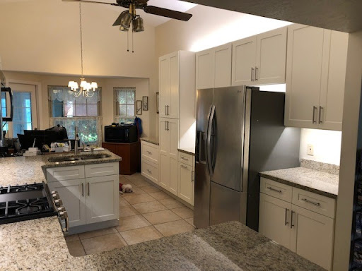 A neighbor who rehabs homes recommended My Kitchen Design Expo after Home Depot gave me a near heart attack with their labor only quote to redo my kitchen and two bathrooms. Maria made time for me on a Saturday with my neighbor and based on the information and measurements derived from my meetings with Home Depot drew up a schematic and provided a rough quote for material. She came to my house to view and finalize the design and I met with her the following weekend to go over pricing and sign the paperwork to begin. Let me say her pricing for labor AND material was $3000 less than Home Depot's labor only price! But that was only the beginning of the good news. Carlos was assigned to project manage the install along with his two fellow team members all of whom were polite and hard-working. They showed up on 9/16 to start the demo. Considering I worked from home in my kitchen I was a little concerned about being so close to the work but there were no problems whatsoever - especially since I own a noise-cancelling headset. Whenever the power needed to be turned off or loud power tools needed to be turned on, Carlos would check with me first to make sure it didn’t interfere with my work. One night they even stayed past 8 PM. All of the cabinets were in boxes and assembled at my house and were one-half inch plywood with soft close doors. I opted for off-white with shaker style cabinets, and the cabinet and bathroom light fixture installs were completed on 9/19. The two medicine cabinet doors and one side of the pantry needed replacement due to some imperfections and these were reordered with no hesitation by Maria. The countertop person - Mauricio - came on 9/19 in the afternoon to measure and estimated the countertops could be installed on 9/27. I had chosen granite for the kitchen and quartz for the bathrooms. I got a call on 9/23 asking if it was okay to install the countertops on 9/25 two days early! Carlos came back the next day on 9/26 and installed the plumbing fixtures and bathroom mirrors plus the replacement material also came in that day so he could replace. Plus my new gas stove arrived that morning and Carlos was able to hook that up for me also. We went thru a punch list of minor items to be fixed like cabinet doors being too close to the frame when opening or shelving that needed to be strengthened and Carlos fixed everything listed. Carlos’ team bagged up all the debris so I would be able to easily mop and vacuum afterwards. As Carlos was leaving he let me know if any issues came up in regards to the install to not hesitate to contact him which was comforting to know. From start of install to finish was less than two weeks! With any install you expect some problems to arise like first installing the bathroom light fixtures too low so that when the medicine cabinet door opened it would hit the light fixture which I share the blame on for not noticing until after the lights were installed. Carlos didn’t hesitate to change the location of the light fixture higher up. Another challenge was when the medicine door opened it would – once the mirror was installed – hit the mirror. Carlos was able to find a hinge that stopped the backward swing of the door to 1-2 inches before the mirror. In other words it’s not whether you have issues during any install but how those issues are resolved and Carlos and his team were perfection in that regard. Anyone considering My Kitchen Expo should not hesitate to use them as their customer service is phenomenal and as a former Project Manager myself, I know how challenging and stressful any project can be. My Kitchen Expo is the standard by which all companies should follow in regards to customer satisfaction. My highest recommendation is given without hesitation. You will not regret your decision to use My...