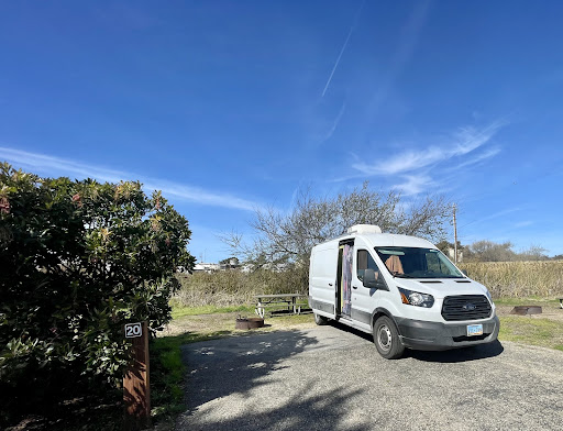 Nice enough campground and it is just a short walk to the beach and it is well maintained. Would have given it more of a rating but the majority of the sites are small and I had a hard time fitting my 25 ft trailer into the spot they gave me so I had to move. There is a small wooden bridge about 20 yards from here and it sounds like a train when cars go over it. There is a nice park across the street but it is occupied by a large number of homeless who also come over and use the bathrooms in the campground as the doors do not lock. Nothing like waking into the bathroom to find a homeless person bathing...
