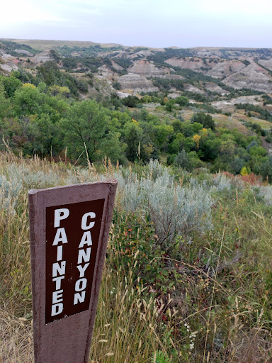 We drove to Theodore Roosevelt Painted Canyon Visitor Center right around dusk. (The center was already closed but the restroom was open for us.) Right from the fence by the parking lot, it was a very nice view! If that's all you do, you still get some pretty landscape views. We found very unique rock and soil formations. The Painted Canyon Nature Trail starts a little walk down (the sidewalk) from the visitor’s center. The sign said the trail was just under a mile loop, so we started down the hill. It is a peaceful walk: a little steep in parts, but nothing too difficult. At dusk there were not too many people there. The trail was dry, but the rock and dirt formations around the area looked like clay! Easy to see how the warnings of “slick trail” after a rain would be accurate. There is informative signage and arrows to keep you on the right track. The outside maps give you a good idea of the terrain. I definitely recommend this unique and...