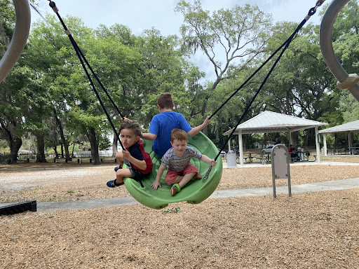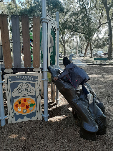 Read moreIts a nice, modern playground with beautiful old oaks- a couple of which can be climbed. Although there is equipment for ages 2+, the obstacle course style climbing ropes and (far too tempting) equipment for older children is integrated with the small toddler area 😔 so naturally the bravest of tiny people end up 10+ feet in the air forcing mommy to climb ropes and hang on for dear life to retrieve aforementioned fearless baby, while he tries to go higher and jump off like the big kids. (I understand and uphold my responsibility to redirect and correct him, however at 2yrs old he doesnt exactly understand why he isn't allowed on this half of the structure while the other children are.) Also, it can be VERY crowded afternoons and weekends. I usually avoid it because its the opposite of calming or relaxing which is something I look forward to for myself when I take the little...