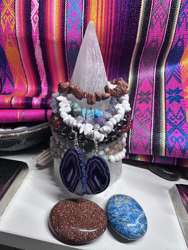 Wonderful little rock shop. They had a great sale when we went in. They have beautiful jewelry, and a really good selection of selenite bowls and pyramid towers, lots of sliced agate, and some unique things I haven’t seen before like agate wind chimes and some kind of embossed or fossilized butterflies. I found sunstone which I have been looking for and have not been able to find at other shops, and my daughters and I all found absolutely gorgeous jewelry that we loved.