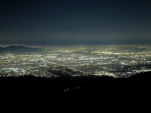 I enjoyed this breathtaking nighttime cityscape view from a high vantage point, possibly a mountain. The endless sea of twinkling city lights stretching far into the distance brought a profound sense of peace to my mind. Standing there, with the clear night sky above and the serene contrast between the dark foreground such a beauty of night.
