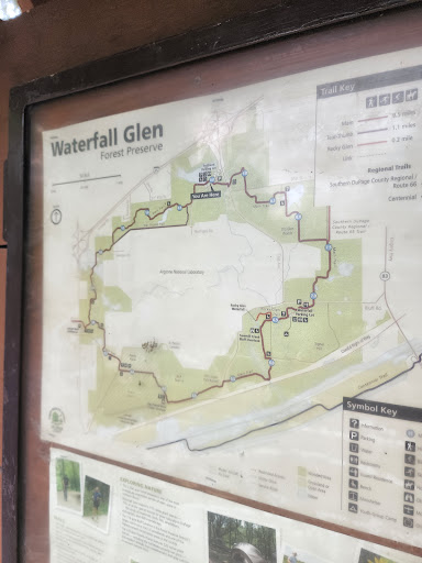 Beautiful spot, especially being so close to Chicago. The maps were a little confusing, and the trails themselves felt pretty ordinary, just woods, no special landscaping, flowers, or sculptures. The waterfall is nice, but compared to others I’ve seen, it’s on the smaller side, sitting on a flat ridge that actually makes you feel taller than it. You can go into the water, which is fun, but the upkeep isn’t great. Brush and plants are growing wild into the paths in some areas, which makes it feel a bit neglected. The bigger issue, though, was safety. While we were in the water, a black or dark-colored snake was surprisingly aggressive. There were no warning signs anywhere, nothing on the information boards about local wildlife or what to watch out for. It happened toward the evening, and I couldn’t tell if it was a rat snake or a water moccasin, but either way, it was alarming. You can however find lots of edible mushrooms around here.