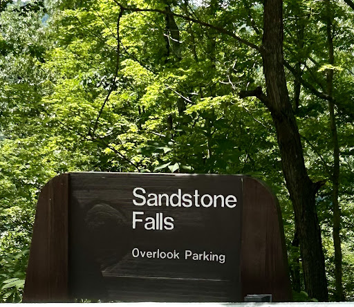 Nice place to see Sandstone Falls from on high This location is about 3-4 miles from the Sandstone visitor’s center off the right hand side of the road. This is an overlook from several hundred feet up and away from the actual falls. It is a good overview of the falls but not really close to them. There is a small gravel pullout with limited parking for about 3 cars. You could get out and take pictures or look from there but for those that want to get a little closer, there is a gravel walking path down about 50 feet below that leads to a large flat open area that gives a better vantage point for pictures. The view is from within a shaded forest and does not offer a great view of the falls. If you want a closer, better view of this site I would strongly recommend that you drive down to the falls viewing site on the other side of the river. It is a fair distance but worth the travel. There is also a set of restrooms right off the road next to this sight. Overall a good place to see the Sandstone falls...