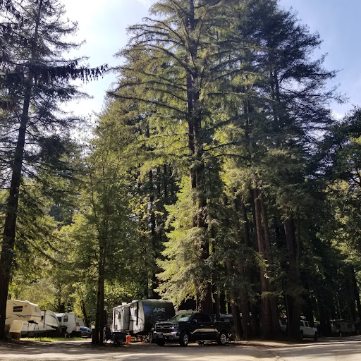Relaxing. Not quite a resort, but definitely a destination to check out if you're planning on pulling to the Santa Cruz area. This rustic site is among many redwood trees and borders the San Lorenzo River. Across the river is the Henry Cowell Redwoods State Park, which is just a short drive out of Smithwoods. The park is small, but beautiful. The sites are well maintained and have full hookups. Some sites have very unique shapes and attributes, using hollowed out redwood trees and fallen branches as dividers, seats, or scenery. The site we stayed in was right on front street, site 90. It had a triangle shape, with a short concrete wall divider between our site and the road. Even though we saw a lot of foot and vehicle traffic, the noise level of the campers was respectfully low. Also, on noise... One really cool thing about this place is that it is near the Roaring Camp Railroad. Every so often you will hear an almost ghostly train horn echoing through the trees. The train horn definitely adds to the rustic relaxation ambiance of this camp. Thanks Smithwoods! We can't wait to return. So, we returned! To our surprise, Smithwoods has begun to install wifi throughout the campsites! We had site 124, right next to Skipper's Hideaway. It had a nice view of the river below, and the state park across the river. We will plan to return sometime in the summer.