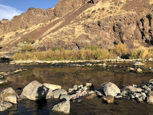 Unbelievably beautiful. I half expected the hot spring to be lukewarm at best. Imagine my shock when I put my foot in and it pulled it back out because it was so hot. I was like holy cow that is way too hot. It's really an amazing place except for the trash, the drive is simply breathtaking the water is see-through and gorgeous . It's quite a shock to your system when you move your foot from the river to the pool itself it's like wow that's just not what I expected at least for me I always figured hot springs was kind of just warm. We arrived on a Monday at about 1:30 p.m., there was a few other cars and an RV but everyone seemed to be in their own area. We encountered another dog who was deaf so his dad said he had to be on a leash or he'd run off into the mountains LOL. We took quite a long walk down the river I found this wonderful place where myself and my blue heeler sat in the sand under the trees and listen to The birds and took in all the beautiful mountains and everything around us it was just so much what I needed today you wouldn't believe it. I think we were the last ones to leave and I really didn't want to go. Next time I'm going to take more time and continue down the road from the hot springs it seems that the road goes through but looks like some Canyons I saw other cars going through it. Like others I wish someone would take care of the bathroom, there's no trash can in there and people are just throwing the toilet paper in a corner and it's disappointing to see that people will just leave trash randomly anywhere. I don't understand why they can't just pick the trash up and put it in a bag and take it with them. But it's not so obvious and so bad that you can't enjoy all the gorgeous peace and quiet and beauty and natural land all free for you to enjoy even better with your well-behaved dog off leash. This was a must needed trip for me today because it's been a couple awful weeks and I honestly didn't expect to see such beauty when I was looking at other trails in Idaho in Oregon. Definitely go and check it out and perhaps someone from whoever is local to the area could monitor it a little bit closely I mean the trash isn't that...