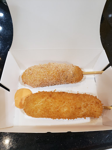 We unknowingly ordered hotdogs about 10 mins before their closing time. Not only did they still allow us to place an order without saying anything about the time—they were extremely kind and helpful to us Korean cuisine novices! Beyond the stellar customer service, the hotdogs were way better than the others we had at the Doraville H Mart location's stall, Oh-K Dog. I think this stall uses better oil and puts more cheese in the filling compared to Oh-K. I didn't add any sauces or sugar and my cheese dog tasted like the best deep fried mozarella stick ever 😋