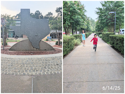 We stopped at the Texas visitor center bordering Louisiana. In front of the Texas statue is a long beautiful walkway. Walking each round trip to and back will earn each kid 15 minutes of Roblox time. Thanks to this long and beautiful walkway, my kids walked 8 laps back and forth. They got their wiggles out, a good walking exercise, and earned 2 hours of Roblox time while on the road. It's a win win for both sides.