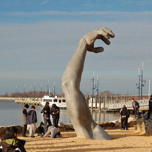Read moreThe Awakening is an aluminum statue showing a giant man/God/myth fighting to emerge through the ground/water. This sculpture is made of five parts and towers 17 feet above the ground. His bearded face is shown struggling against the wait of the world.