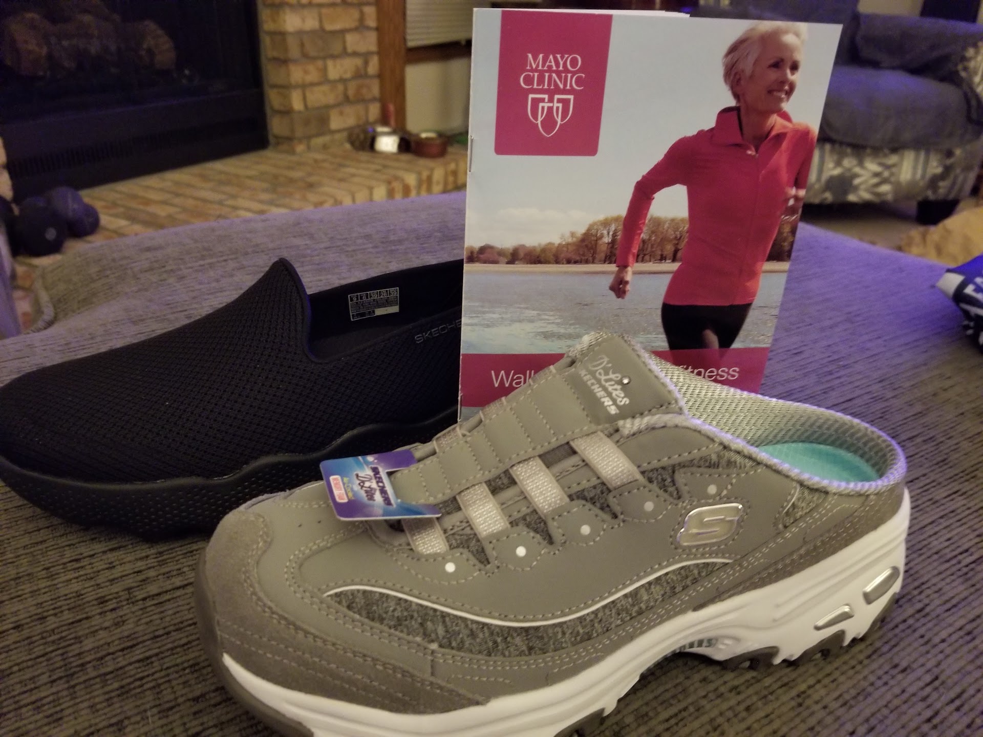 There is a paved walkway in front of all the stores with trash cans and several benches to rest.