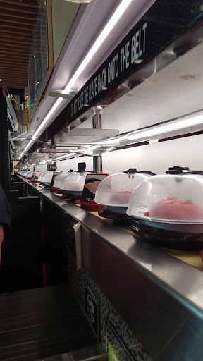 1st time to a sushi place. We loved the little robot that delivered the drinks. It took a minute to figure out but it was very fun and so many kinds of sushi to try and some more basic types for those who like meat instead of fish/seafood. But also a lot of different seafood things to try for the more discriminating pallets/braver tasters. We went after a Harry Potter event, so don't mind our strange...