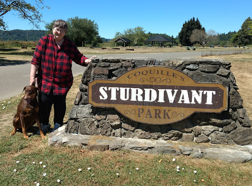 Read moreStopped here on our way to Bandon. Noticed bathrooms, river, a baseball dimond, some kind of large built kids play thing, looked like some camping spots to the back end of the park, a boat dock, a veteran memorial, and a huge rock memorial to a guy named Buzz Holmstrom. From just walking around, it looks like the place needs some work. Bathrooms definitely need to be repainted and repaired. Tolets didn't flush correctly. Both memorials need some loving care and cleaning. Buzz memorial was really hard to read. I didn't walk back to the camping spots, so I'm not sure how well they were set up? Boat ramp looked in good condition. If this park is supposed to be kept up by the city if Coquille, they need to get busy, nice park that has been let run down. PS: had to laugh that they still have an old pay phone connected to the bathrooms. Can't use it of course, but shows just how out dated...