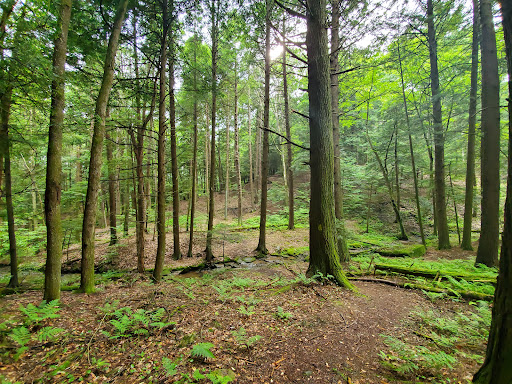 Β Β Β Read moreTook the Gerard trail from the Rynd Farm RR station north to the park office - 4 miles. A " 7 " on the difficulty scale so not too rigorous but a good stretch of the legs to be sure. Some steep climbs and soggy in a few spots with a couple of narrow side hill / deep dropoff paths. Scenic second / third growth hemlock/maple/oak/cherry forest with some flats and dark ravines, saw a few deer and a bunch of squirrels. Came across an old building that housed some type of motor (steam?) connected to a bizarre system of steel rods that spread out in all directions. That this hilly terrain had all a those derricks and storage tanks is astonishing. The scars of the oil industry's infancy remain today with the many pipes, rods and sinkholes still visible. An interesting and invigorating hike, highly...