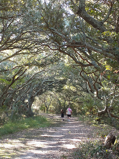 Lovely hidden gem of the OBX! The nature trail is peaceful, secluded, and magically beautiful. The trail is smooth and flat and mostly in the shade of the maritime forest. We barely saw any other people (just 2) the whole time we were there. The wooded trail parallels the road for 2.5 - 3 miles and begins behind the Pine Island Racquetball and Fitness Center. The first sound overlook deck is around the halfway point - we walked as far as that and then turned around. Heard and saw lots of birds singing... and saw LOTS of spiders. So beware and walk carefully, especially if you're tall - there were many webs stretched above the trail. Despite the spiders this is my new favorite...