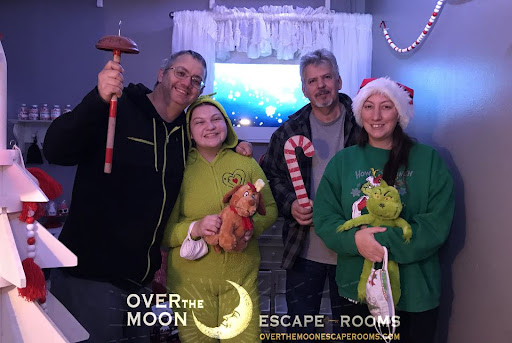 Not wanting to get up too early on a Saturday, we made our booking for 2:15pm, and arrived there just shy of an hour. Over the Moon Escapes is located in a business center, so parking was plentiful on a non-workday. The lobby was terrific, and decked up like it was Christmas (it was still!). It did get a little awkward at the restroom because they were fully booked, and there was only one all-gender restroom, but allowances should be made since this kind of crowd is, sadly, not typical unless it is the holidays.