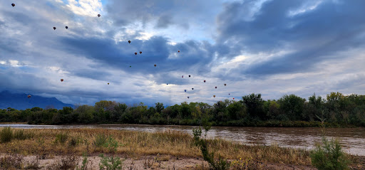 By luck I stumbled across this prime spot to watch Ballon fly by (down wind) from the #AlbuquerqueBallonFest2022. Few people around simple parking at access point and seems to be pretty safe neighborhood surroundings. It was a little hike (1 mile) to the Guadalupe River but worth getting alittle dirty. Saw a few Ballons do "Touch and Goes" right in front of us !!!