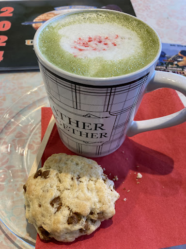 Was drawn in by friendliness of volunteer staff to try a cinnamon chip scone (Iām in love! Concentrated heaven in a chip. ) and a match maker latte - made with matcha and choices of what ended up for me to be white chocolate ( or vanilla or lavender) and peppermint ). I am not usually a green tea person- but this was a great combination for me - just the right sweetness and ālatte-nessā without overpowering the tea....