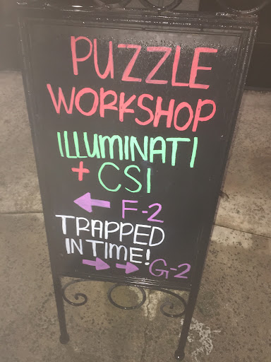 I initially booked 2 simultaneous rooms (6 people for each room) at a custom time with Kym. Then I suddenly had 2 people drop out 3 days before the event. Then I had nearly everyone drop out of the scheduled event after the escape rooms. Then I had the wild idea to try and book a third escape room immediately after the first two in its place instead, and then tried to figure out if I had enough people interested ... all of this literally the night before we were supposed to show up at Puzzle Workshop. And at each new development, I was calling Kym trying to keep her updated and exploring our options and backup plans.