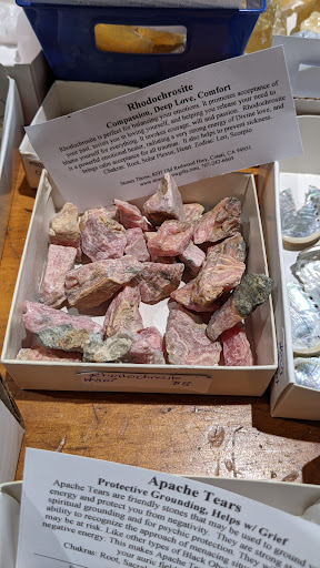 Read moreSmall, but well stocked shop with a nice variety of entry level mineral specimens, flats with roughs, and some cut gems. Generally low cost, bulk stuff, but some mid range pieces. Nothing especially rare, but a few unusual types like shattuckite, dioptase, rhodo, etc. The place has a decidedly "spiritual" tilt. Many new age gifts, jewelry and tchotchkes. Workers were positive and friendly overall, but I would like to see more emphasis on the geology of specimens. The specimens lacked key details on locality and species on many pieces. Locality on specimens is key info for ethical collectors to ensure proper identification of sources; frankly it's more important than supposed metaphysical properties. Shop could use better lighting too... But overall a fun little shop in a cute small downtown district right...