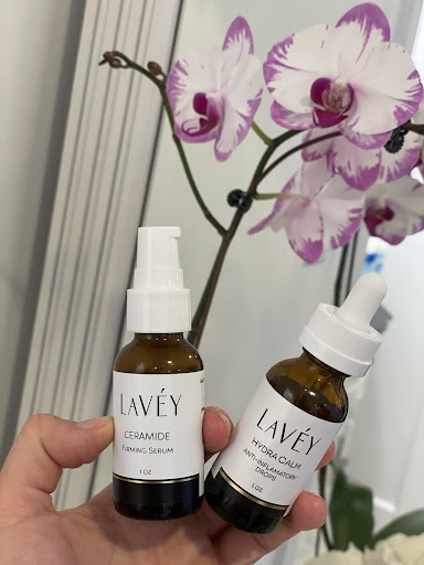 My favorite Lavey Products are: Velvet Healing Lavey exfoliating cleansing nectar BIOCALM Gentle Soft Cleanse