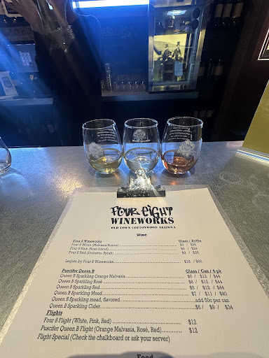 Tonight we had the pleasure of trying the new Four 8 Wineworks restaurant in Old Town Cottonwood. The meal started off with complementary Duros de Harina, a nice citrus chili crunchy kick start! The traditional style Southern Fried Hot Chicken was cooked perfectly, just the right amount of heat for me and NOT greasy (hallelujah!). We tried 4 sides with our chicken dinners, fennel slaw, jalapeño cornbread, greenbeans and bacon and elote off the cob. The sides are modest in size so you can try several. Save room for dessert .... the warm sourdough waffle with homemade sea salt Caramel Gelato is a must!! We will be back. It's a...