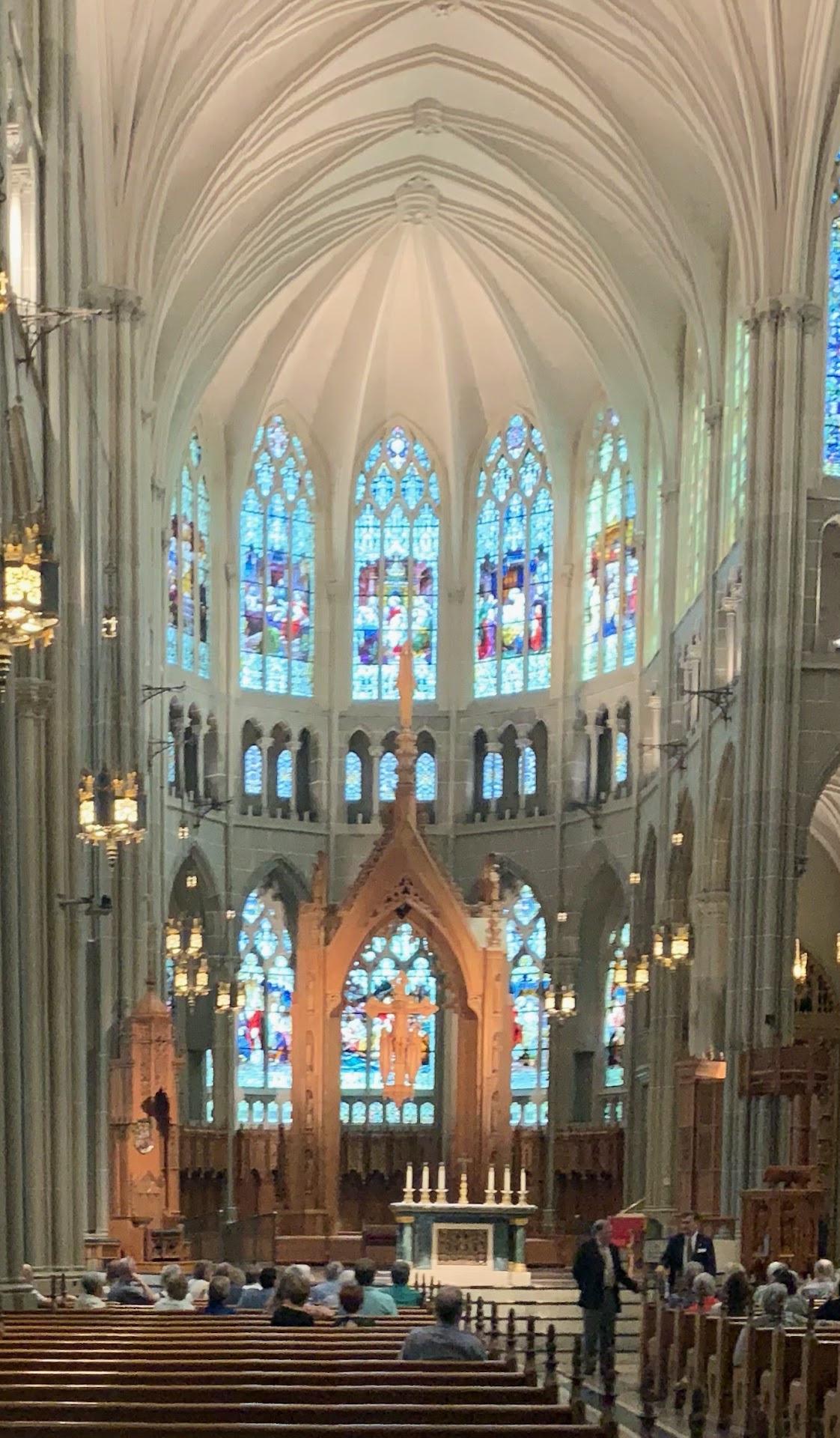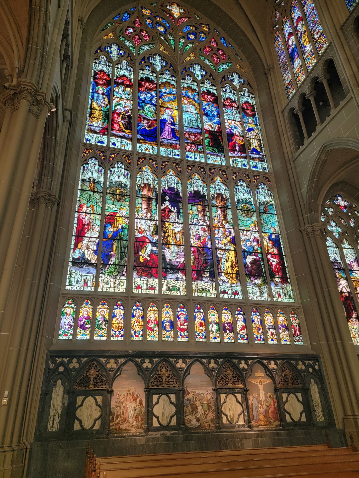 The greeter stated that the largest stained glass window in the church is apparently the second largest stained glass window in the world. That window and the other stained glass windows are impressive.