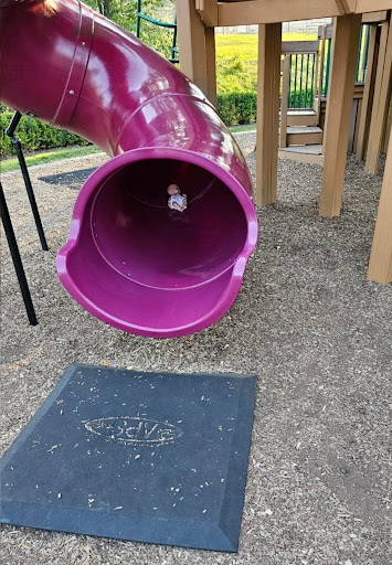 Beware of the pink/purple spiral slide. My daughter loves this playground and we come here about once a week. Yesterday a friend convinced her to climb on top of the pink slide while I was waiting on the other side of the rock wall for them to come "scare" me. But it was taking too long so I came around the corner to see them both straddling the upper bottom of the pink slide and told them no and to get down. Then my daughter slipped off and fell on her arm breaking it. I also previously saw a child on another visit fall off the slide and hit his head on the metal supports. I see several children climbing up that slide on the top almost every time we go. It is dangerous and slippery. The zip line is lots of fun but requires adult supervision. Please be careful and don't take your eyes off your kids for a minute, especially around that slide. Something should be done so it's not so easy to climb on...