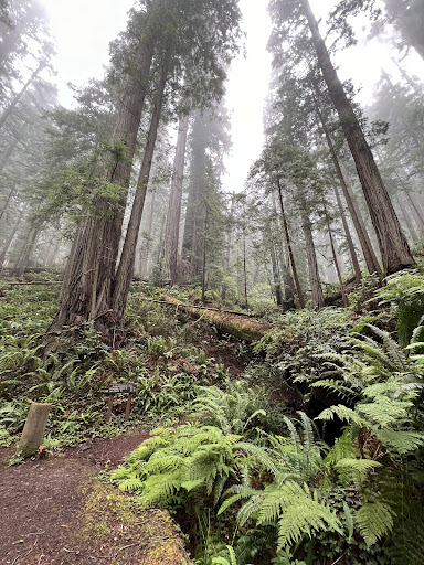 Read moreGreat hike among the redwoods with a dog. Several of the trails through Prairie Creek Park criss-cross the road. The hike out is uphill and took us about 70 or 80 minutes, but was half that time to return. We probably saw 10 to 15 cars over about 2 hours. The dirt road keeps car...