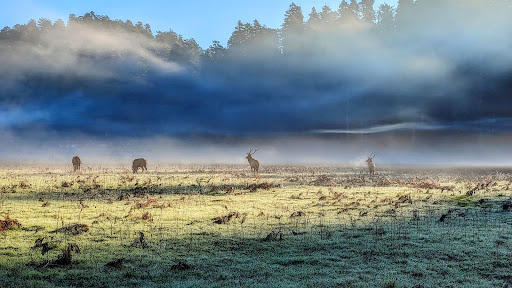 The Prairie Creek Visitor Center has plenty of free parking, well maintained restrooms nearby, picnic tables, and benches so you can sit and watch the wild elk herds in the nearby fields. It also is the crossroads and starting location of several short and easy hiking/waking trails or a day hike so that you can get out and see the beautiful redwoods in the natural environment.