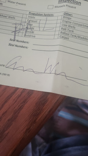 I am an active duty Marine that finally got to bring my new boat out after deployment. The previous owners last ran this boat on this very lake last fall. This spring I just bought the boat and after doing so I cleaned it up and ran clean water through the entire motor. So knowing that the motor is clean as a whistle I drove almost 2hrs to get to this lake. After a short inspection I had to drop my engine and literally a cup of the clean water leaked out and this lady Ann W. failed me. I was in shock when she told me I failed the inspection. Not only did I fail but I had to wait 8 DAYS to come back to reinspect. I said well I can just drive around the corner and make sure any water is out and she said it doesn't matter you already failed. The signature although unreadable looks like an Ann Winston. If you see an Ann employee ask for someone else to inspect your vessel. We drove 5hours today and wasted about $50 in gas just to be told we can't come into the park because of literally a few ounces of CLEAN WATER that came out of my motor. I even explained to Ann that I just thoroughly rinsed my motor out and she did not care. We had to turn around and drive all the...