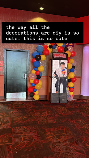 i wish i had more photos but for my son’s 5th birthday today we went to watch Superman! walking up i saw the hand painted Superman/Krypto paintings on the doors, the concessions had cardboard buildings that were also handmade with superman action figures “flying” between them, and this little photo booth! the ticket scanner was dressed as superman. let him know he made my day! it was all really cute, it being made by employees was so cool. i hope whoever did these was compensated. hope passion gets rewarded. side note i also saw Oppenheimer here in IMAX. pretty good but the seats are crazy close together. hope those seats get upgraded soon like ppl say in the reviews lol.