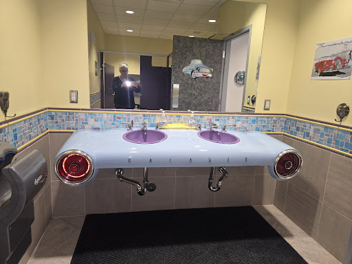The staff was supper friendly. The restrooms were clean and were also automotive themes.