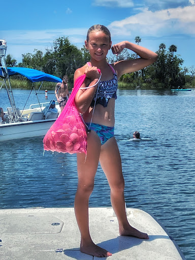 Once we were ready, we walked down to the pontoon boat and met Captain Morgan—yes, her real name! She was cheerful, knowledgeable, and set the tone for a fun and safe adventure. We headed out into the bay, and though the crew wasn’t sure exactly where the manatees would be, they were confident we’d find some. Sure enough, our eagle eyes spotted a few, and we quickly geared up to get in the water.