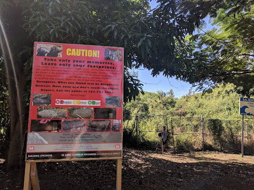 SNORKELING TIPS: Look at the satellite view on Google Maps. There's a sandy area smack dab in the middle of the beach - this will be north of where you enter the beach from the walking trail. There'll be a fallen down sign warning boats to not drop their anchors. This is a good spot to put your stuff down and put on your snorkeling gear. Look out towards the water and swim directly out - you'll notice that waves are breaking on either side of you because there are rocks on either side of you and it can get fairly shallow so just go directly out instead of trying to swim over the rocks if it's a concern. There are floating white tie-offs for boats that travel to the bay (or if you're lucky you'll see a boat tied up out there and it'll be a visual cue as to how far you'll need to swim), and that's roughly where the drop off is and where there are more things to see. It's at least 20 feet deep if not further down, so a nice sunny day allows for a better view of the coral down there - wear appropriate sun shirts or rash guards to make up for it. There are some gigantic brain coral and a good number of fans and lots of fish. Follow this drop-off/shelf north or south as you want, but make sure to go back to the center before swimming back in because you'll get blocked off by the shallow rocks if you don't. If you're swimming parallel along the rocks on your way out to the drop-off - don't be discouraged by it's relative deadness. Once you're out a bit, the waters are cooler and there's less sand, so that's where the coral...