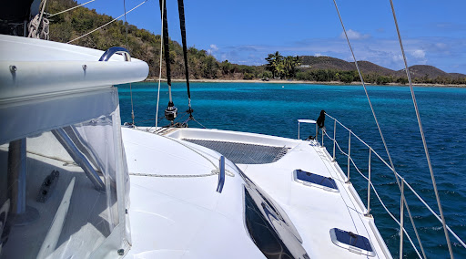 We sailed over from the and their were only to mooring balls here, one had a broken leader we finally landed one on Malone's.