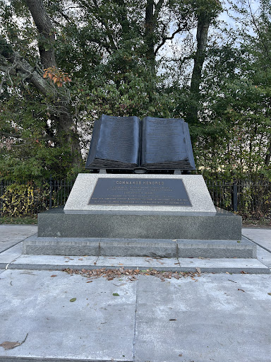 The Copse of Trees was the focal point for the Confederate attack on July 3rd, 1863. This patch of trees allowed for a visible focal point on which the artillery bombardment and Pickett’s Charge could align during the attack. On the east side of the Copse of trees is the monument to the High Water Mark of the Rebellion. The Gettysburg Battlefield Memorial Association dedicated the monument in 1892. It is in the form of a giant bronze book opened to display two pages which list the units of both sides that took part in Longstreet’s Assault on July 3, 1863. The book stands on a stone base set with tablets and two bronze cannon...