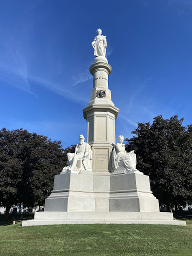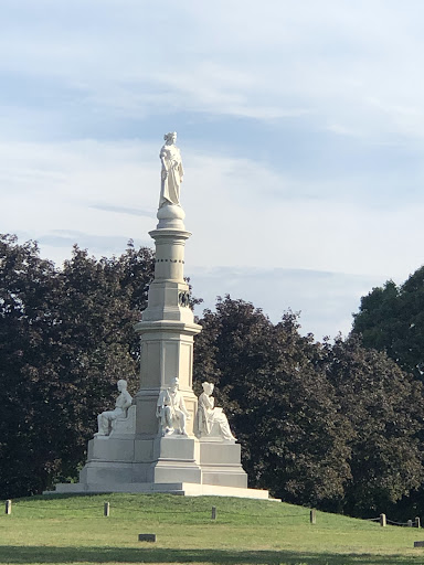 The Soldiers' National Monument is a Gettysburg Battlefield memorial which is located at the central point of Gettysburg National Cemetery. It honors the battle's soldiers and tells an allegory of "peace and plenty under freedom … following a heroic struggle."