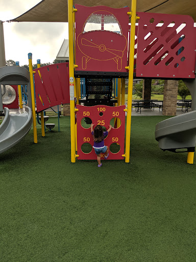 Read moreGreat playground for kids. My son is almost 18 months, and he really enjoys the swings and the 2-5 year old playground. The artificial turf covering the play area is nice and cushioned, but there are some places that are uneven, and caused several children to fall while I was visiting. I saw one family whose children weren't wearing shoes, so that could be another benefit of the turf. Several areas of the play sets are covered by shade structures, which is very nice to have in the summer. There's also a large, covered pavilion with picnic tables where my son sat down to rest and get some water. I went around 9:00 a.m. on a Saturday, and it wasn't busy, unlike Fowler park...