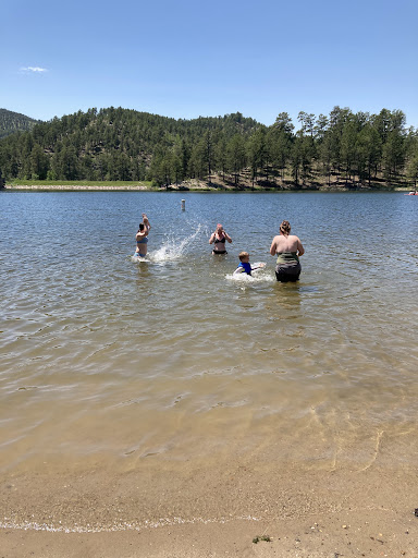Wow! I don't know where to start! We've come to the Black Hills many times as a family before but have never ended up at Legion Lake. We were actually here twice for our two week stay in the hills. My brother and law and I the-hiked the Centennial trail and we came right by this place on our second night. They were sold out, but someone cancelled right as well walked in so we were able to stay and get a wonderful little cabin and shower after a 17 mile day. Nedra was our front desk hostess. She was wonderful and so thoughtful. We bought some cold drinks and she went to the back to also give us some free ice. We ended up putting our sore feet into that ice and it was such a blessing! Thank you Legion Lake staff for being so friendly to thru-hikers! Your lake and resort falls right along a beautiful trail and your were an oasis for a first time hiker! We came back a week later to pick up some things I had left behind (this is common of first hikes as you always carry more than you need and figure out in the first couple days what you need to get rid of). The short walk around the lake was great for our whole family to do and we even climbed some rocks. The beach is beautiful and I honestly wish we could have...