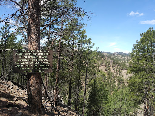 Read moreThis was the first hike my mom and I did once we got to Custer State Park and it was a great introduction to our week here. I read on other reviews that people suggest going left/clockwise at the fork but personally I would have gone right. We went left and felt that it was the wrong thing to do, it quickly ascended in elevation in a short stretch and it seemed every strenuous. By the time we got to the pretty, scenic downhill part of the trail, we were tired and wanted it to be done. But that's just my opinion and I would say we are casual hikers. The views (other than the burnt trees) are pretty and watch out...
